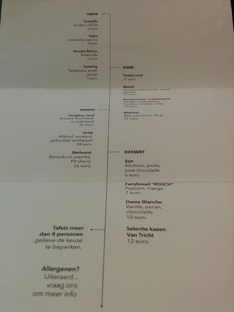 For a unique culinary experience, the Kalfstartaar Tonkatsu combines veal tartare with the crispy texture of tonkatsu, delivering a dish that’s both tender and crunchy. Bonito offers a fresh, light, and flavorful bite, while the Kwartel provides a tender poultry option with a delicate taste that pairs beautifully with the other ingredients. Seafood lovers will surely enjoy Kabeljauw Girollen Vin Jaune, a dish that combines the richness of cod with the bold flavors of vin jaune, a classic French wine.